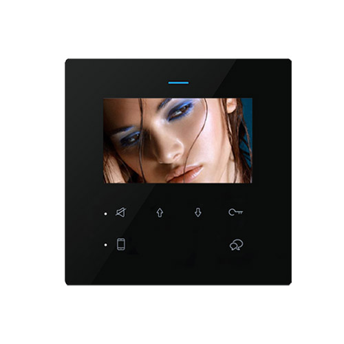 DF4 4-inch digital screen. Full Duplex (2-way talking). Handsfree. Colour video • Finish: Acrylic glass piano black • Dimensions: W138 x H138 x D13.8mm • Mounting type: surface mount • 12 ringtones • Check outside and talk to people outside at any time you wish to, even if no one rings the bell • Intercom function among all monitors in one flat/apartment