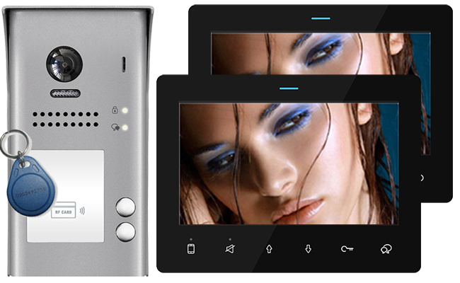 2-Flat Door Entry System Keyfob Reader with DF7 Black Monitors