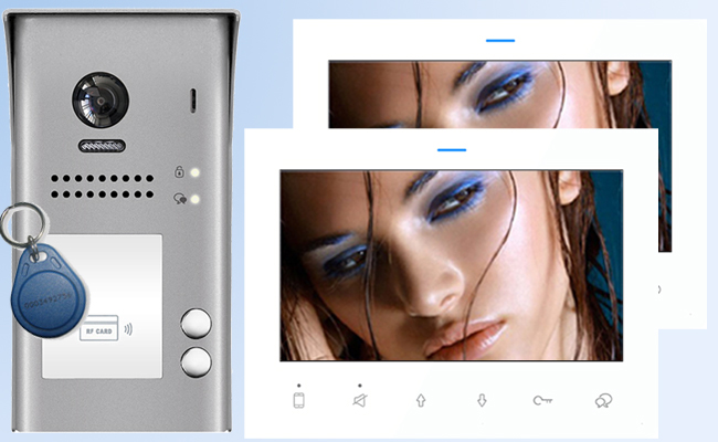 2-Flat Door Entry System Keyfob Reader with DF7 White Monitors