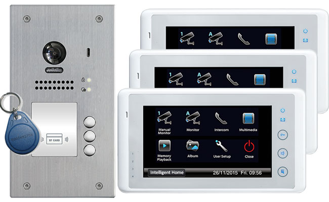3-Flat Door Entry System Keyfob Reader with Cronus Recording Monitors