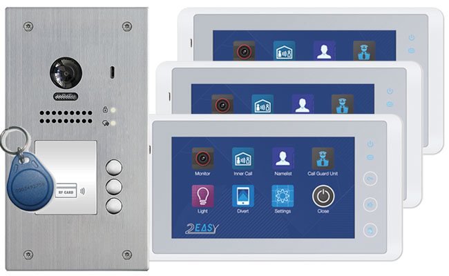 3-Flat Door Entry System Keyfob Reader with Cronus Touchscreen Monitors