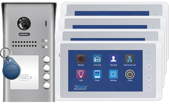 4-Flat Door Entry System Keyfob Reader with Cronus Touchscreen Monitors