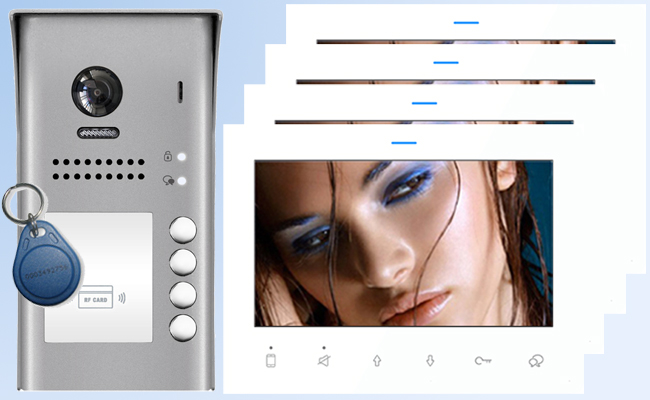 4-Flat Door Entry System Keyfob Reader with DF7 White Monitors