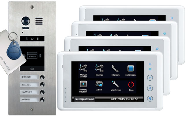 4-Flat Door Entry System Vosper Card Reader Direct Call Cronus Recording Monitors