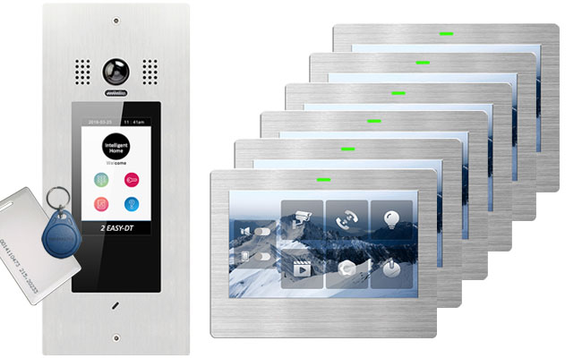 • Mounting way: Flush mount or Surface mount with rain cover • Touchscreen 5-inch TFT Module with built-in Keypad, Proximity Reader and Residents list