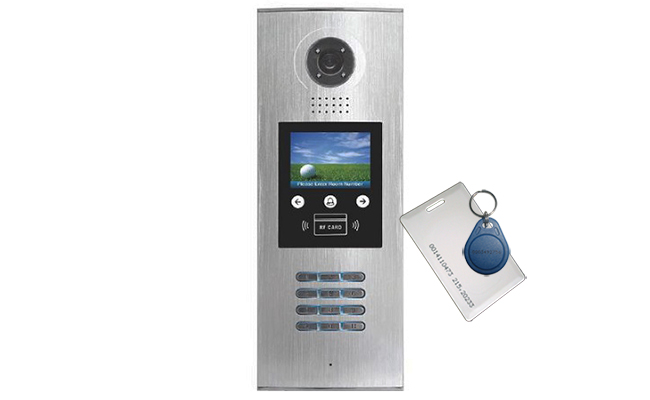 • Finish: Aluminium • Dimensions: W128 x H350 x D45mm • Mounting way: Flush mount with rain cover supplied supplied • Proximity reader • Camera: new generation image sensor whide angle 90 degree field of view, Adjustable • Night vision with 6 white light LED • 3 Tone Options: Silent, Ringtone, Voice Ennunciation • Programmable Tenant Name List which will be dispayed on the 3.5" screen • Programmable Property name
