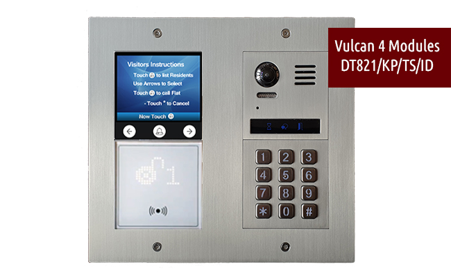 Vulcan Video Door Station 4-modules with Mechanical Keypad, Key fob Reader Dot Matrix and Touchscreen Modules Model DT821KP/TS/ID2x2